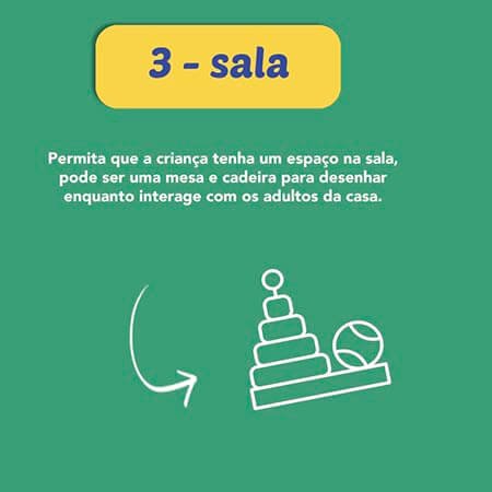 Dica 3 – Sala: Permita que a criança tenha um espaço na sala de estar, pode ser uma mesa e cadeira para desenhar enquanto interage com os adultos da casa.