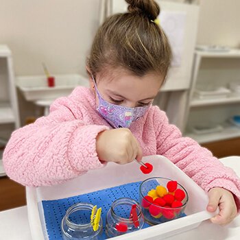 Em um recipiente a criança encontra um objeto de cores variadas e precisa separá-los, por cor, para concluir a tarefa.⠀