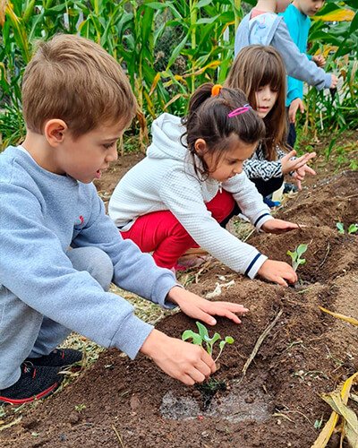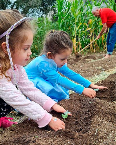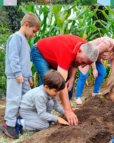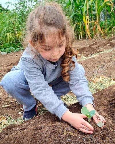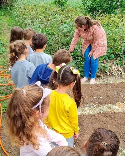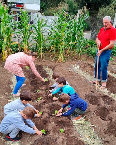 Temos na escola uma pequena horta para cultivar com as crianças verduras e legumes que depois de prontos são saboreados por elas. Nessa semana os nossos bambinos foram agraciados com um convite muito especial. Dona Ester e Seu Lino Troes, nossos vizinhos, nos convidaram para uma experiência coletiva na horta de sua casa. ⠀