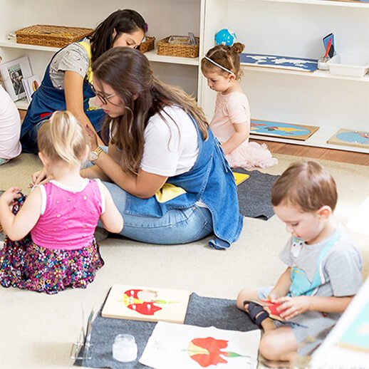 Cada criança tem a liberdade de usar o material que mais lhe interessa, de acordo com seus períodos sensíveis. Depois de explorá-lo ela o devolve à prateleira para que o outro colega também possa utilizar. O professor apenas interfere quando necessário ou quando solicitado pela criança.⠀