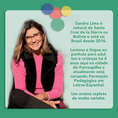 Arrasta para o lado e vem conhecer nossa querida Profe de Espanhol.⠀