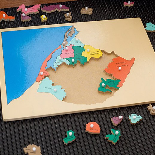 No Ensino Fundamental o trabalho com mapas passa de uma atividade sensorial de encaixe para uma percepção maior de onde estamos localizados.⠀