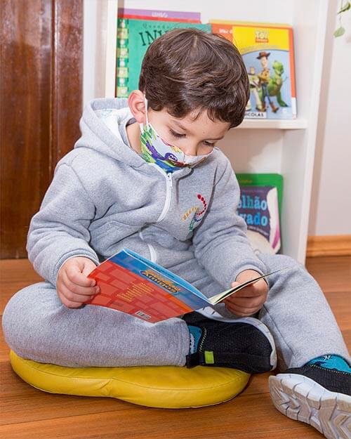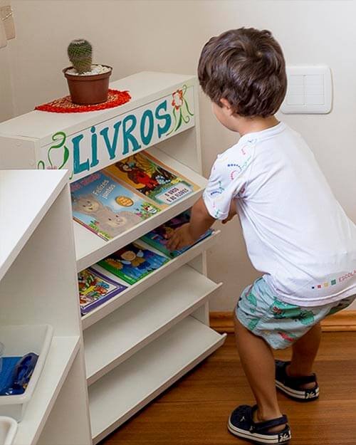 Para incentivar a criança para o hábito de ler, é importante organizar um espaço confortável e acolhedor com livros disponíveis para a sua faixa etária..