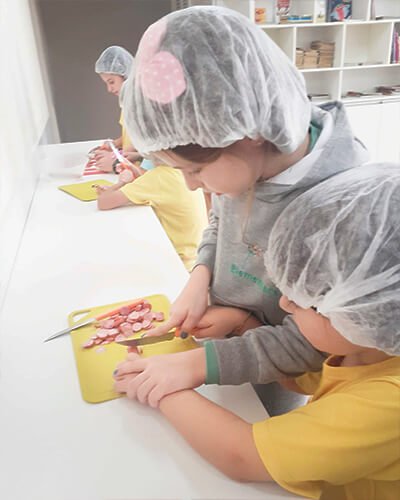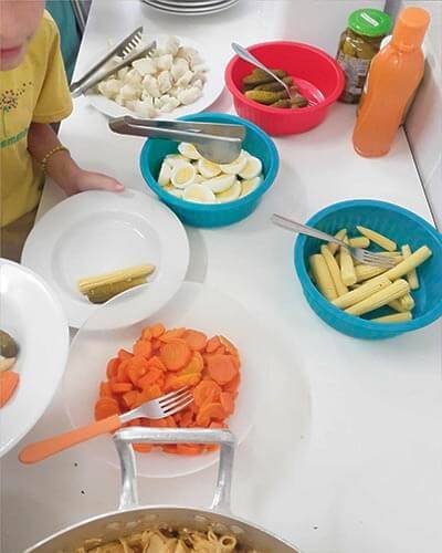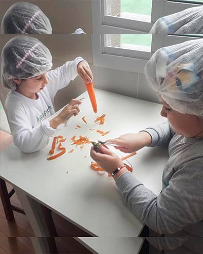 Aqui na @escolaelementare toda quarta-feira o almoço fica ainda mais especial, porque é o dia dos nossos bambinos participarem da preparação do seu próprio almoço.⠀