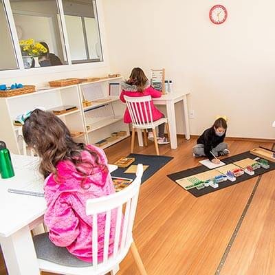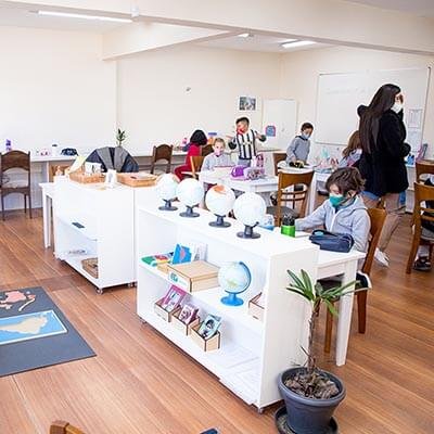 Alguns trabalhos são individuais, outros em pequenos grupos e também há aqueles que todos aprendem juntos. Sempre com um adulto preparado observando, conduzindo e respeitando o ritmo de cada aluno.