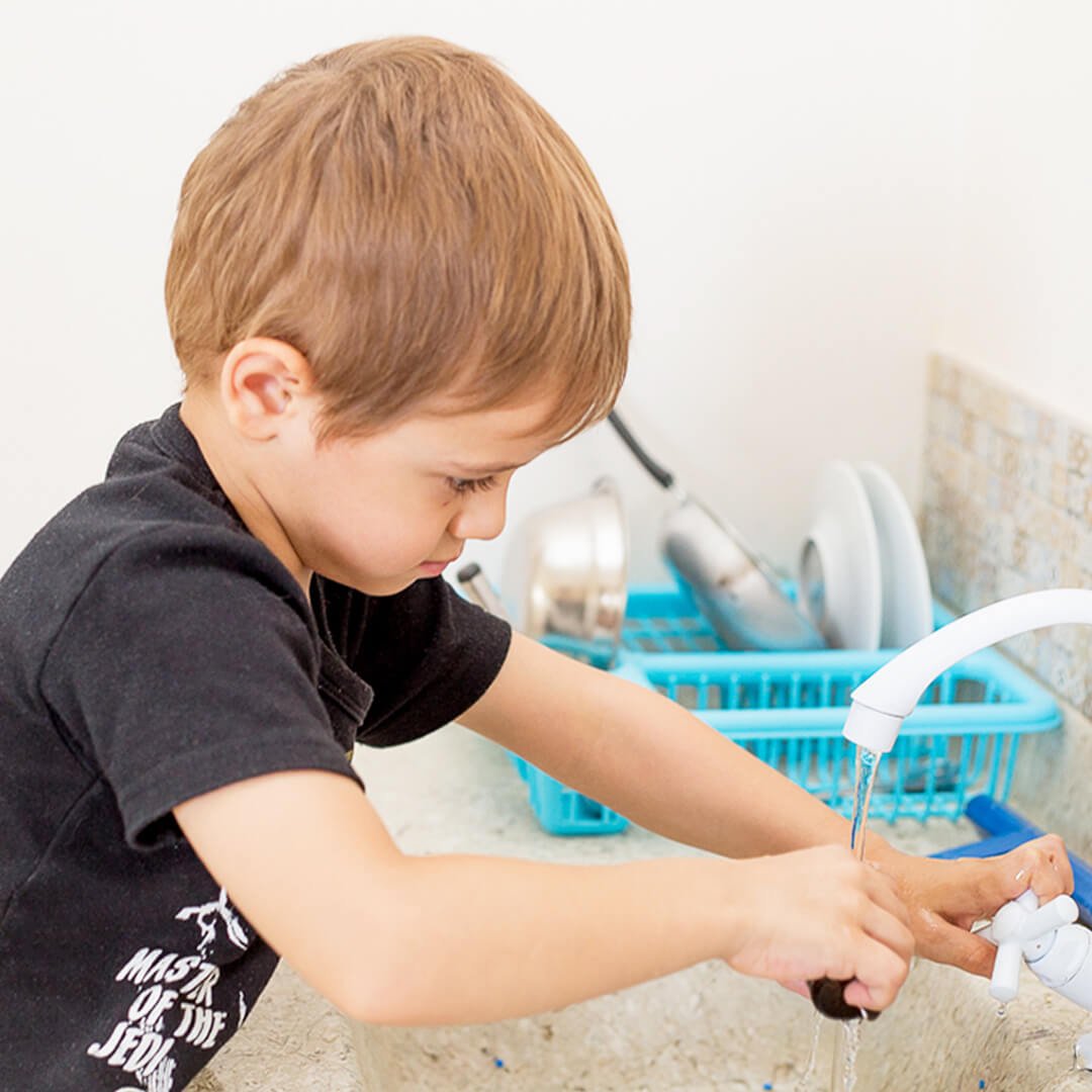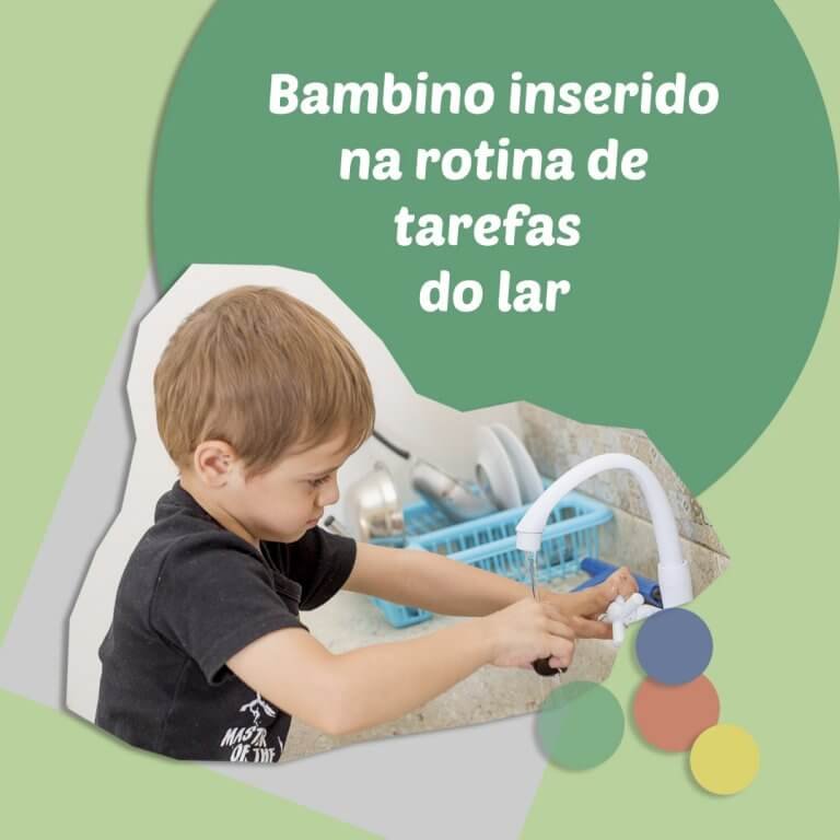As crianças se sentem atraídas em fazer aquilo que nos veem fazendo, como lavar a louça, colocar a roupa para lavar ou trabalhar com o computador. Permitir esta experiência aos Bambinos, fará com que eles se sintam importantes e integrados na rotina da família.⠀